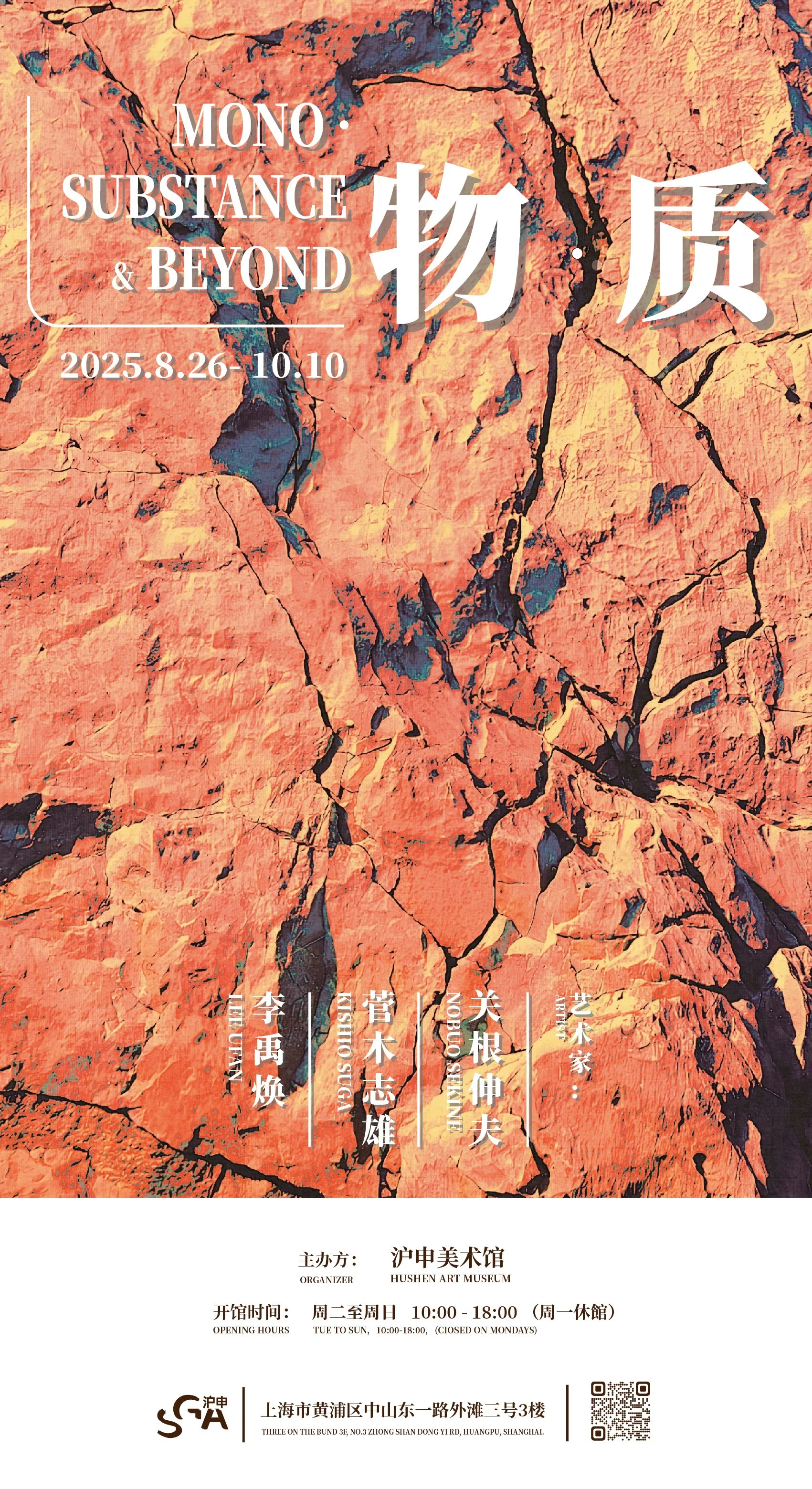沪申美术馆欣然宣布举办群展 “物·质”,本次展览以韩国艺术家李禹焕(Lee Ufan)与日本艺术家菅木志雄 (Kishio Suga)、关根伸夫(Nobuo Sekine)为代表,聚焦20世纪六十年代兴起的“物派”艺术实践。展览将展出多件重要作品,呈现他们如何通过石头、木材、铁板、纸张等自然与工业材料,探索“物”自身的存在与张力。此次展览展期为2025年08月26日至2025年10月10日。